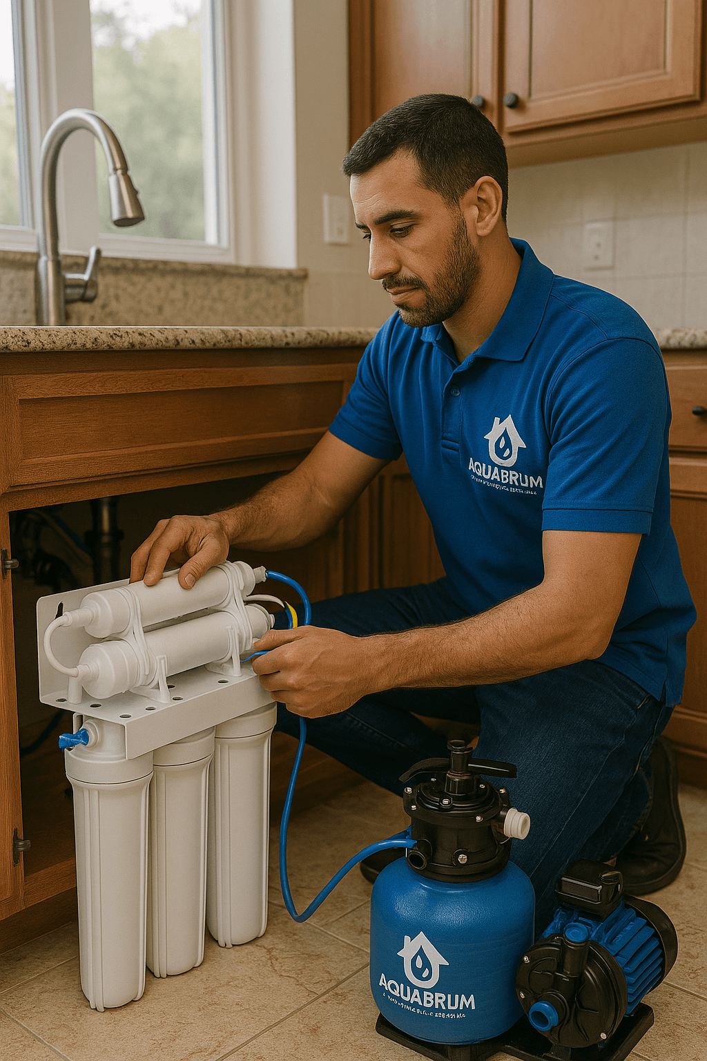Chez Aquabrum, nous mettons un point d’honneur à proposer des solutions qui allient confort, performance et qualité de l’eau. Notre mission : vous offrir une expérience fluide et sereine, en vous accompagnant avec des équipements de confiance, une installation soignée et un suivi professionnel.